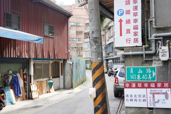 不過,照住址找的時候不要轉進143巷40弄的巷子裡,記得照巷口的指示牌往下走到底右轉、再右轉,就可以看到幸運草幸福家居的工廠了!