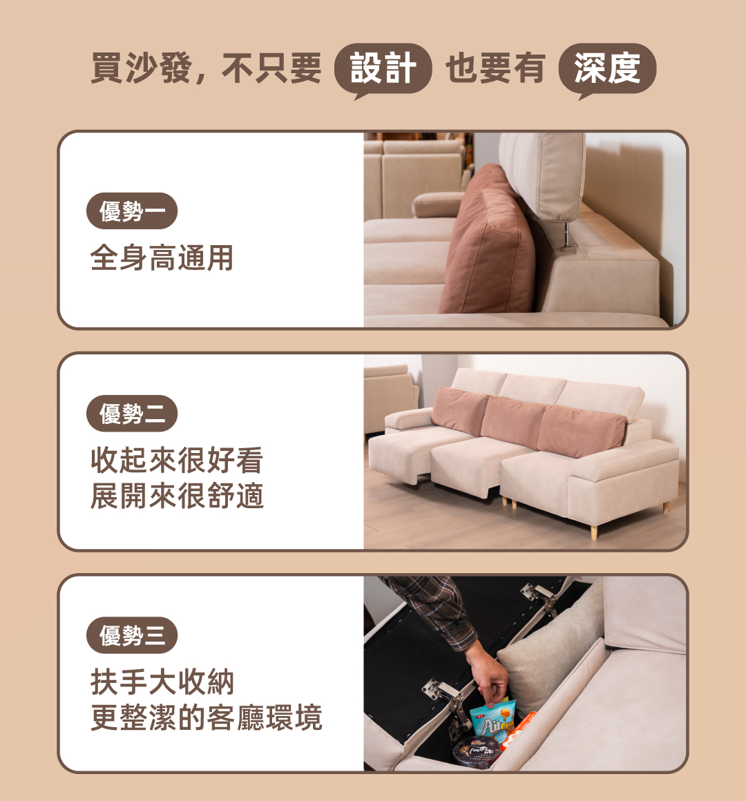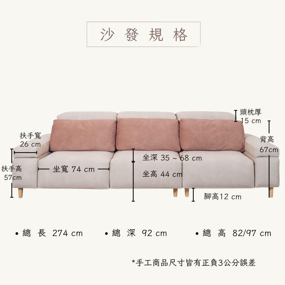 卡斯比亞│窄扶手設計│W256*D94.5cm
